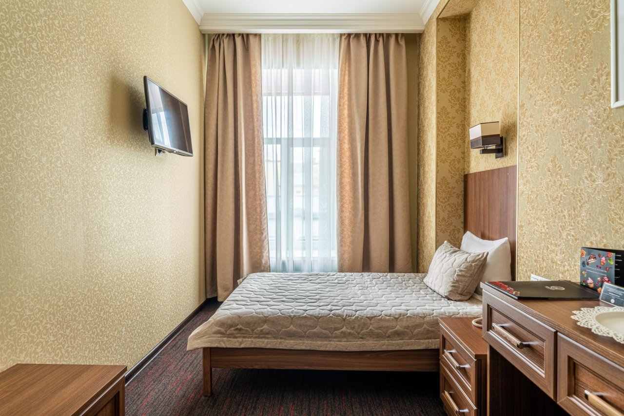 В однокомнатный номер площадью 14 кв.м входят: односпальная кровать, рабочая зона, ванная комната с душем, фен, косметические принадлежности, бесплатный Wi-Fi, централизованное кондиционирование, телефон, спутниковое телевидение, сейф.